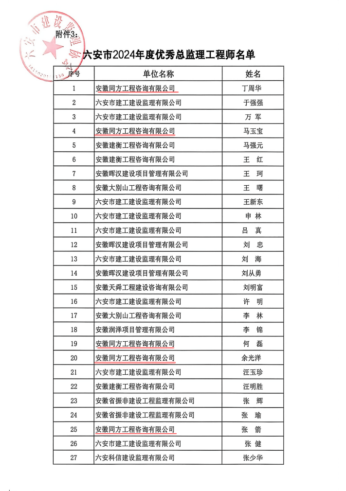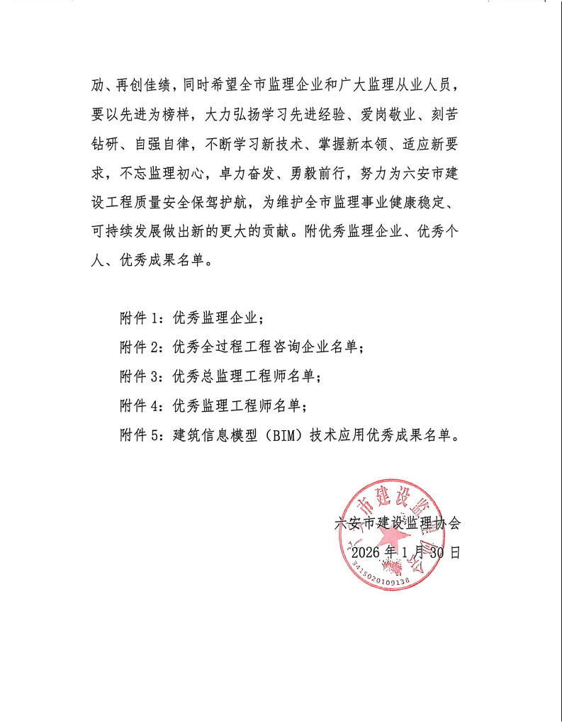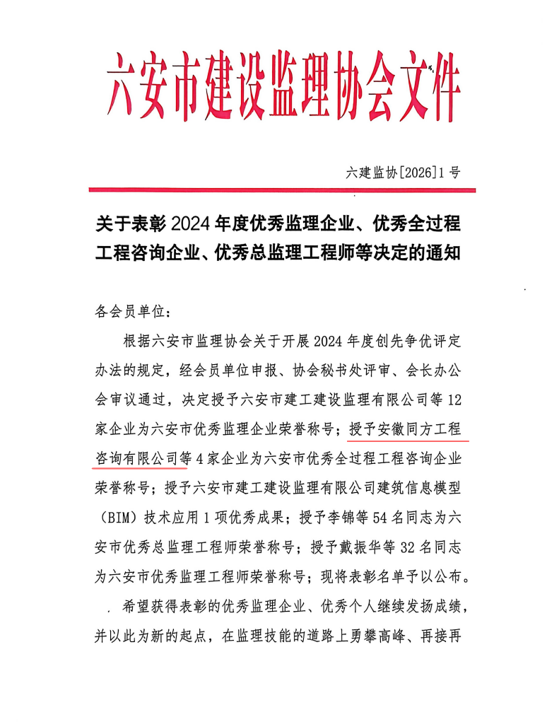 关于表彰2024年度优秀监理企业、优秀全过程工程咨询企业、优秀总监理工程师等决定的通知